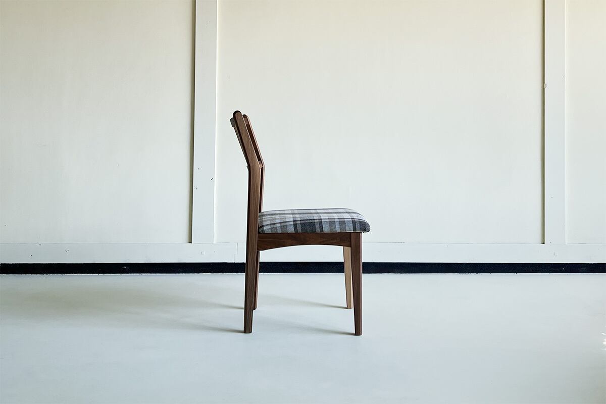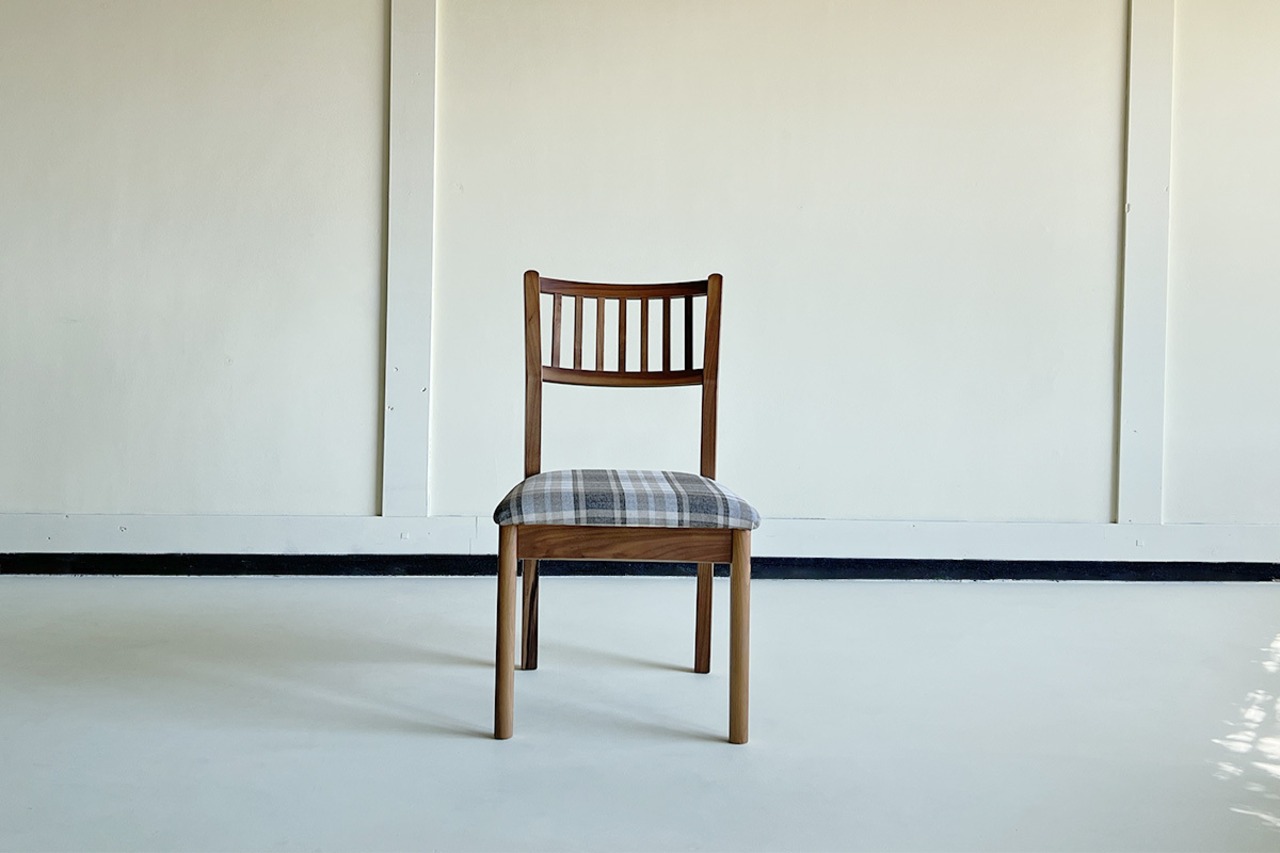 ウォールナット材のフレームに優しい色合いのチェック柄で柔らかいテクスチャーに仕上げております。1脚だけでもおしゃれ度UP!
